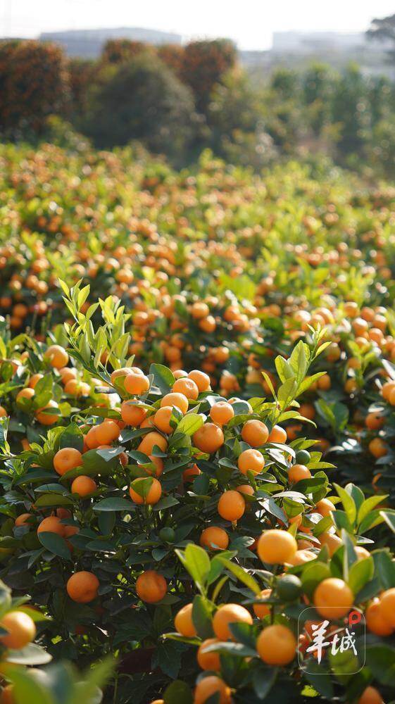 在200多亩的年桔栽培基地,黄澄澄的果实缀满枝端,幽香桔味扑鼻而来,田间地头货车穿梭、农户忙活,一片繁荣昌盛的地点。